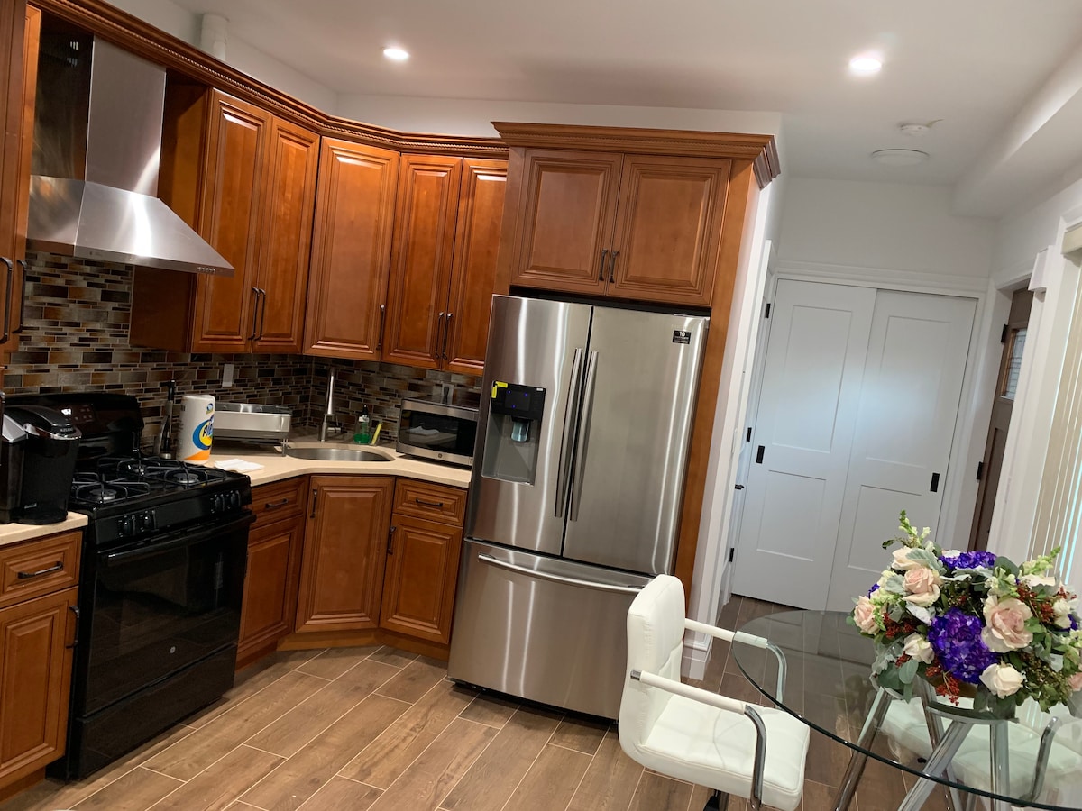 Liggend in een mooie en rustige met bomen omzoomde buurt. Het bevindt zich vlak bij Sanford blvd met alle lokale winkels. Waaronder Stop & Shop, Target, CVS, Burger King, McDonald 's en KFC om er maar een paar te noemen. Enkele van de beschikbare voorzieningen zijn Smart Tv,wifi, werkplek,koffiezetapparaat, kookgerei en keukengerei, strijkijzer, strijkplank en haardroger om er maar een paar te noemen. Er is ook voldoende parkeergelegenheid. Het is ook 15 minuten lopen naar metrostation North, je bent in 25-30 minuten in het NYC.