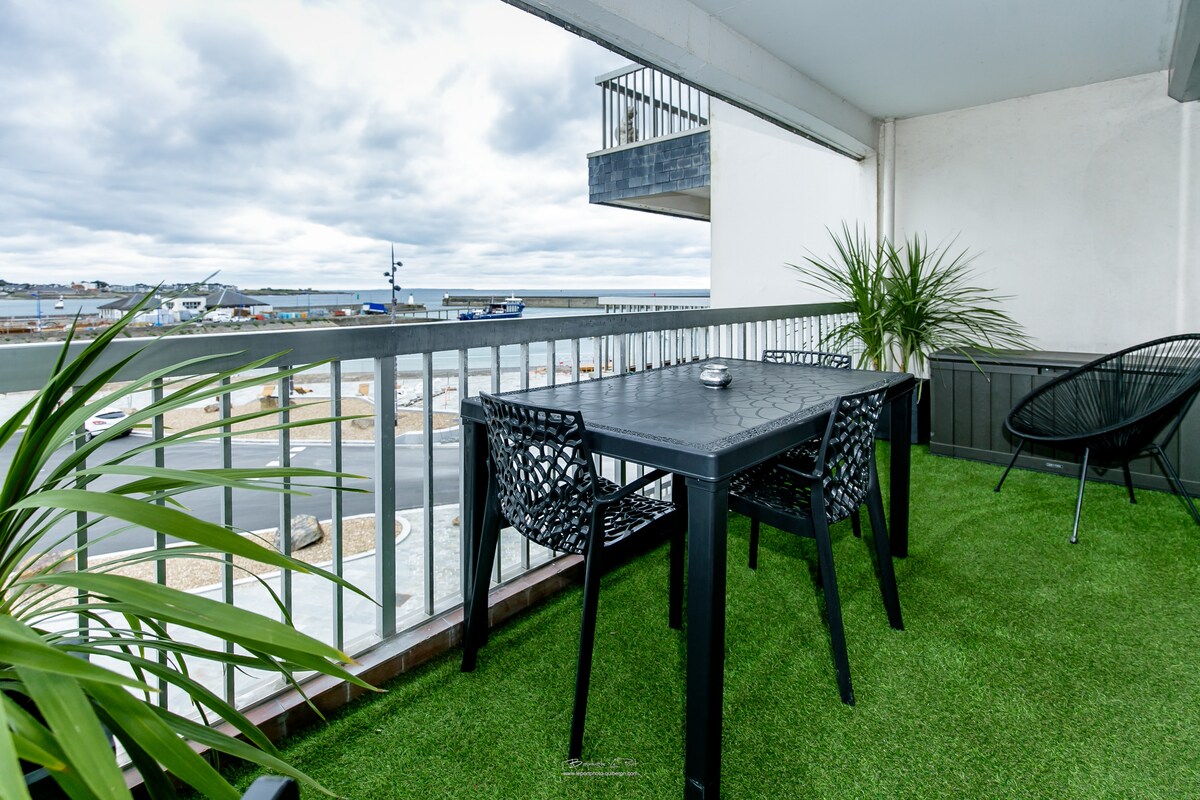 'Belles de Bretagne' biedt je een studio van 33 m2 op de 2e verdieping met lift. Comfortabel ingericht: woon-/eetkamer met een OPVOUWBAAR bed (1 x 160 cm, lang 200 cm), tv. Keuken (vaatwasser, elektrische kookplaat, koelkast) waterkoker, elektrisch koffiezetapparaat, espressomachine). Douche/toilet, wasmachine. Balkon. Mooi uitzicht op zee. Parkeerplaats. Bed- en badkamerlinnen extra. De schoonmaak wordt door jou gedaan. Vergeet niet om aan je reservering toe te voegen als je met je huisdier komt.