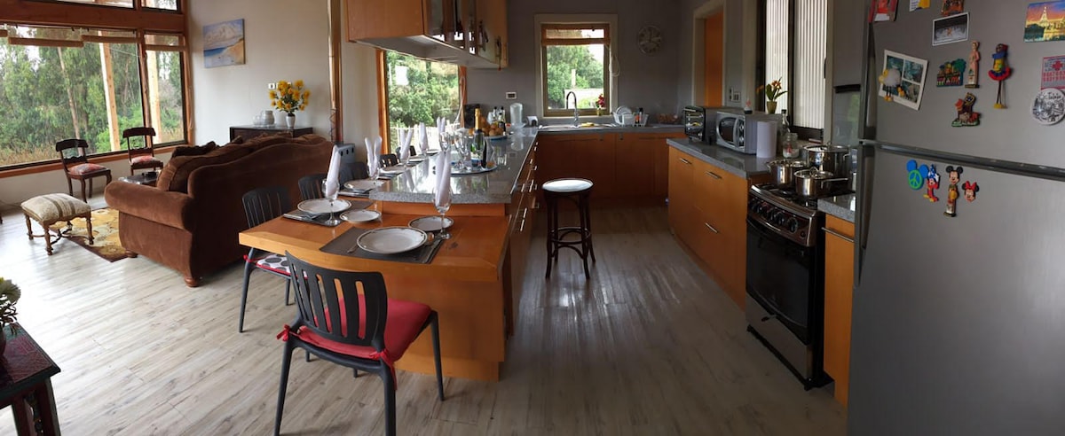 Ubicada en un amplio terreno verde, rodeada de naturaleza y con fácil acceso desde la Ruta 5 Norte. Es un lugar tranquilo, ideal para descansar, desconectarse del ritmo de la ciudad y recargar energías. Capacidad para hasta 4 personas e incluye una cocina equipada, dos habitaciones con cómodas camas de 2 plazas. Podrás compartir con nuestros perritos que viven libremente en el terreno. Si buscas desconexión, tranquilidad y un ambiente natural, este es tu lugar!