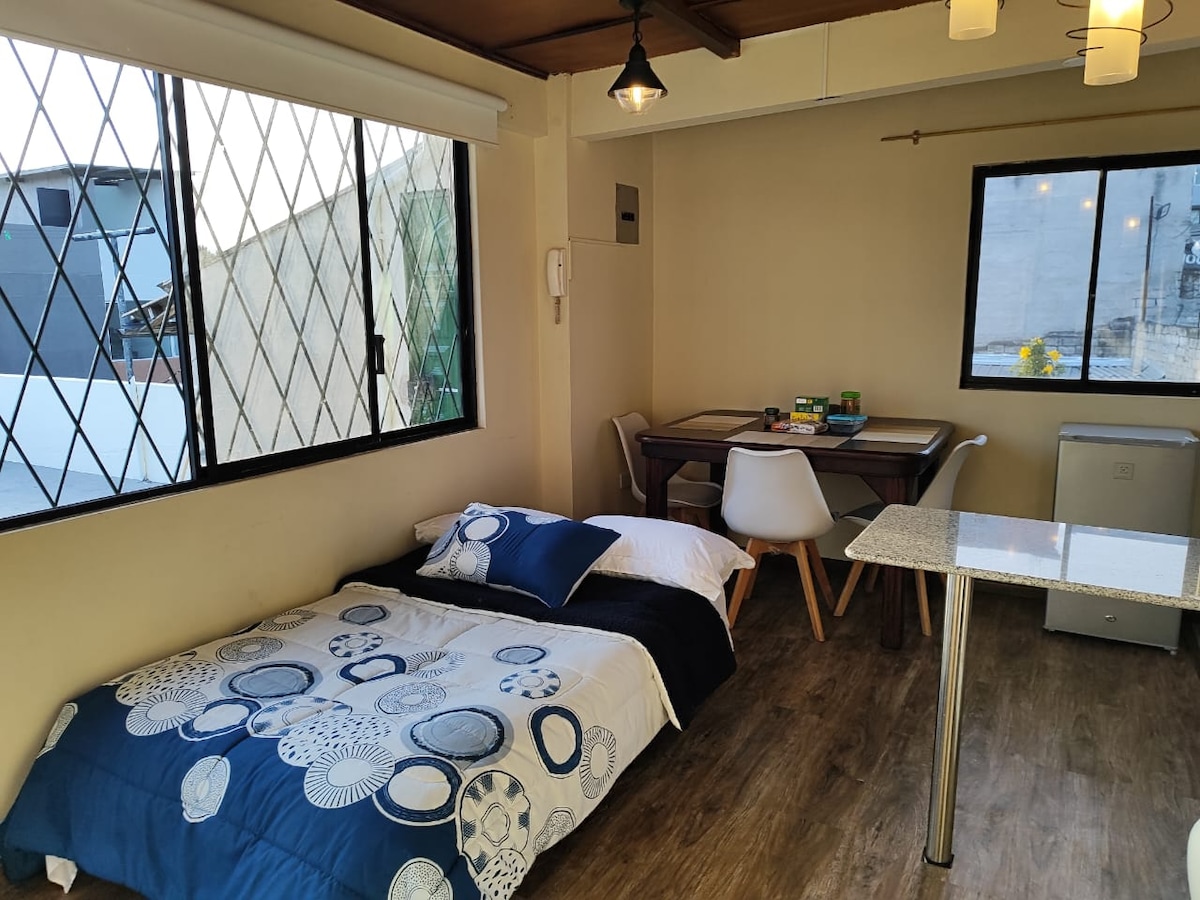 Geniet en ontspan in onze luxe apartestudio, gelegen in de financiële sector van Quito. Vanaf de 17e verdieping van het iconische Edif. Ten eerste kun je opstaan met het beste uitzicht op de zonsopgang. Het gebouw heeft exclusieve sociale ruimtes: zwembad, natte gebieden en fitnessruimte, voor een onvergetelijk bezoek. Het appartement denkt na over je comfort, daarin vind je alles wat je nodig hebt voor een aangenaam en aangenaam verblijf: wifi, uitgeruste keuken, tv met Netflix.