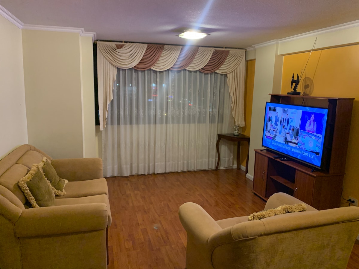 Comfortabele en volledig uitgeruste suite, op twee minuten van de Amerikaanse ambassade en het Solca Hospital. Gelegen in een van de veiligste ensembles in de stad. Bezoek Quito en ontspan met alle voorzieningen die we hebben 24-uurswachter Groene gebieden Kinderspelen High-speed wifi Volledig uitgeruste keuken Eigen parkeerplaats in het gebouw Wasmachine en droger. Zeep, shampoo en conditioner Je beste keuze tijdens je bezoek aan Quito.