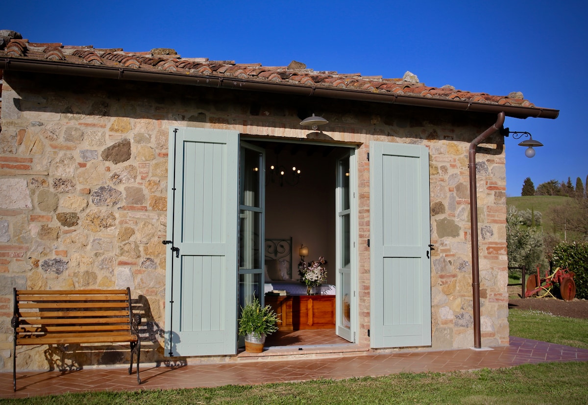 Het huis heeft een zeldzaam en betoverend uitzicht op de Val d'Orcia en Monte Amiata, wat zorgt voor maximale privacy. Het interieur weerspiegelt de charme van de Toscaanse stijl, met antieke meubels en afwerkingen gemaakt door lokale ambachtslieden. Het is uitgerust met een slaapkamer met tweepersoonsbed, een grote woonkamer met een grote tafel, een volledig uitgeruste kitchenette, een slaapbank voor twee personen voor de open haard, in de woonkamer. Buiten kun je op de patio eten met de kleuren van de zonsondergang als achtergrond.