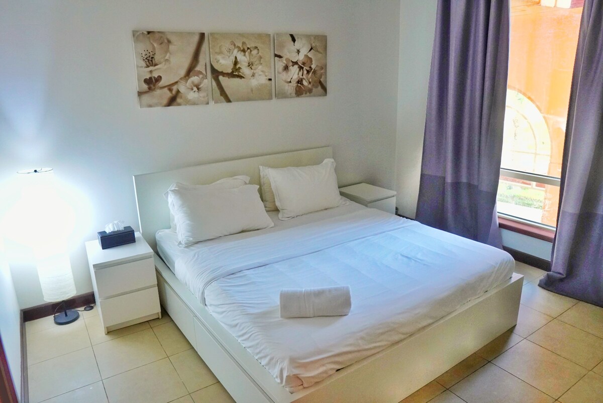 Het appartement 'Amwaj View' is een luxe unit met drie slaapkamers en een prachtig uitzicht op zee. Gelegen boven een selectie van chique restaurants en cafés, kunnen bewoners genieten van een verscheidenheid aan eet- en entertainmentopties op slechts een steenworp afstand. Het appartement kijkt ook uit op een prachtig zwembad, wat een serene en ontspannen sfeer creëert. Het interieur combineert elegantie en comfort, met grote ramen die natuurlijk licht binnenlaten en een panoramisch uitzicht op de zee bieden