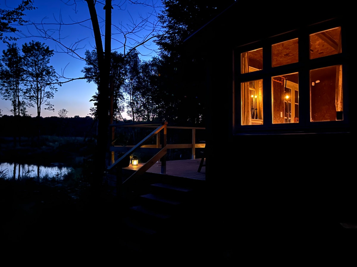 Een klein avontuur in het bos - de Skovly-schuur met uitzicht en een kampvuur Verborgen op een open plek wacht een armoedige wagen met ziel. Word wakker met vogelgezang en de geur van het bos terwijl de ochtendzon de weide raakt en de beek in de verte glinstert. Binnen vind je een tweepersoonsbed, een eethoek en een kleine kitchenette met alle benodigdheden. Buiten wachten een houten terras en een grote open haard met een buitenkeuken - perfect om te koken onder de sterren. Hier vind je alleen de geluiden van de natuur en de rust waar je naar verlangde.