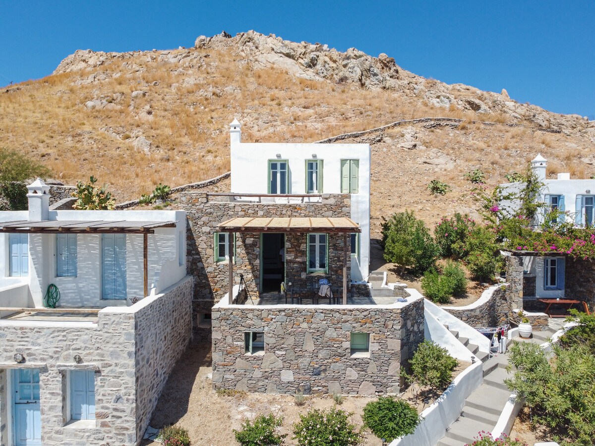 Deze accommodatie maakt deel uit van een complex van vijf huizen en is perfect voor gezinnen of koppels. Het is gunstig gelegen op slechts 1,7 km van Livadi met een spectaculair uitzicht op de haven en de naburige eilanden. Het is volledig uitgerust met alle moderne voorzieningen. De eigenaren wonen ernaast en zijn altijd bereid om je verblijf onvergetelijk te maken.