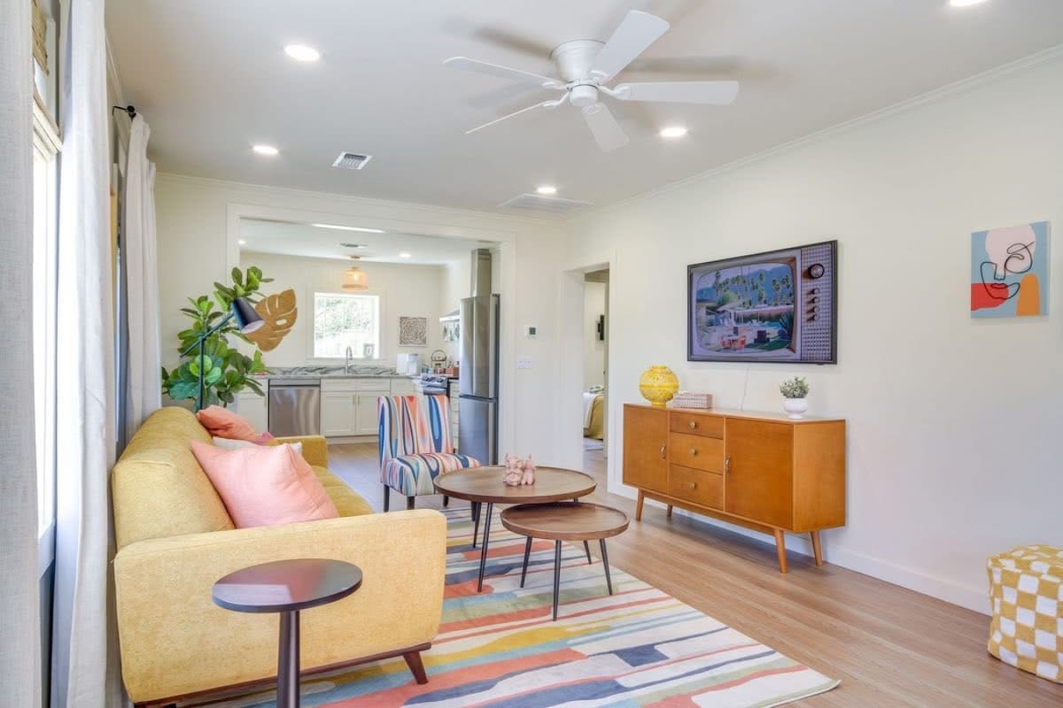 ☀️Welkom bij The Sunnyside Suite, een luxe en stijlvol tiny house in het hart van Gulfport. Deze gloednieuwe woning is perfect voor diegenen die op zoek zijn naar comfort, gemak en netheid. Deze high-end woning beschikt over een luxe queensize bed, volledige keuken, 50 inch tv en een stomende regendouche. Stap naar buiten in de rustige en eigen tuin, prachtig verlicht door warme lichtjes. Gelegen in de buurt van restaurants, casino 's en stranden, is de Sunnyside Suite de ideale keuze voor een rustig en onvergetelijk uitje