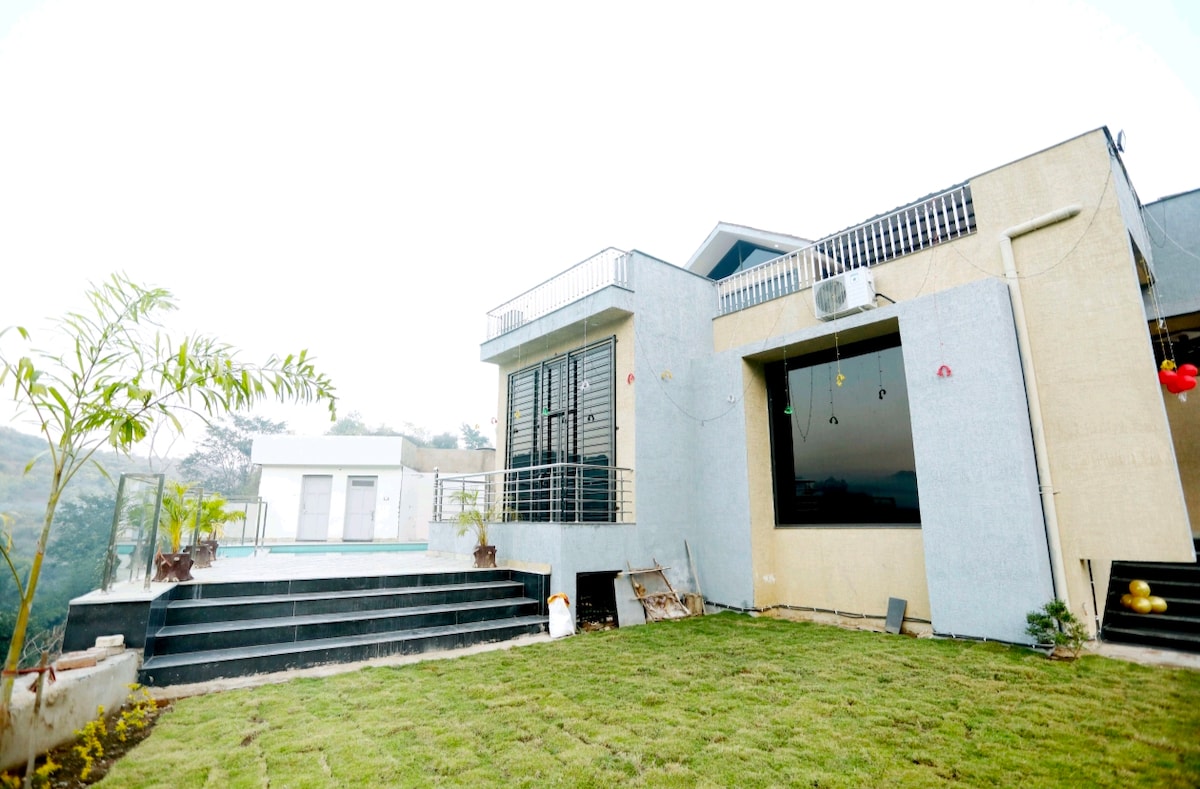 Ontspan met het hele gezin op deze rustige plek om te verblijven. 4Bhk luxe villa met privézwembad, volledig uitgeruste keuken zeer mooi uitzicht op Aravalli Hills. De accommodatie is nieuw en gelegen in de buurt van chirwa jungle hills. Het Forest phoolo ki ghati waar zipline-avontuur beschikbaar is op slechts 1 minuut rijden ,Eklingji tempel, Shahashtrabahu tempel en Vaishnav devi tempel liggen op slechts 5 minuten rijden en Shrinathji tempel ligt op 20 minuten rijden van onze accommodatie en nog veel meer natuurlijke schoonheid