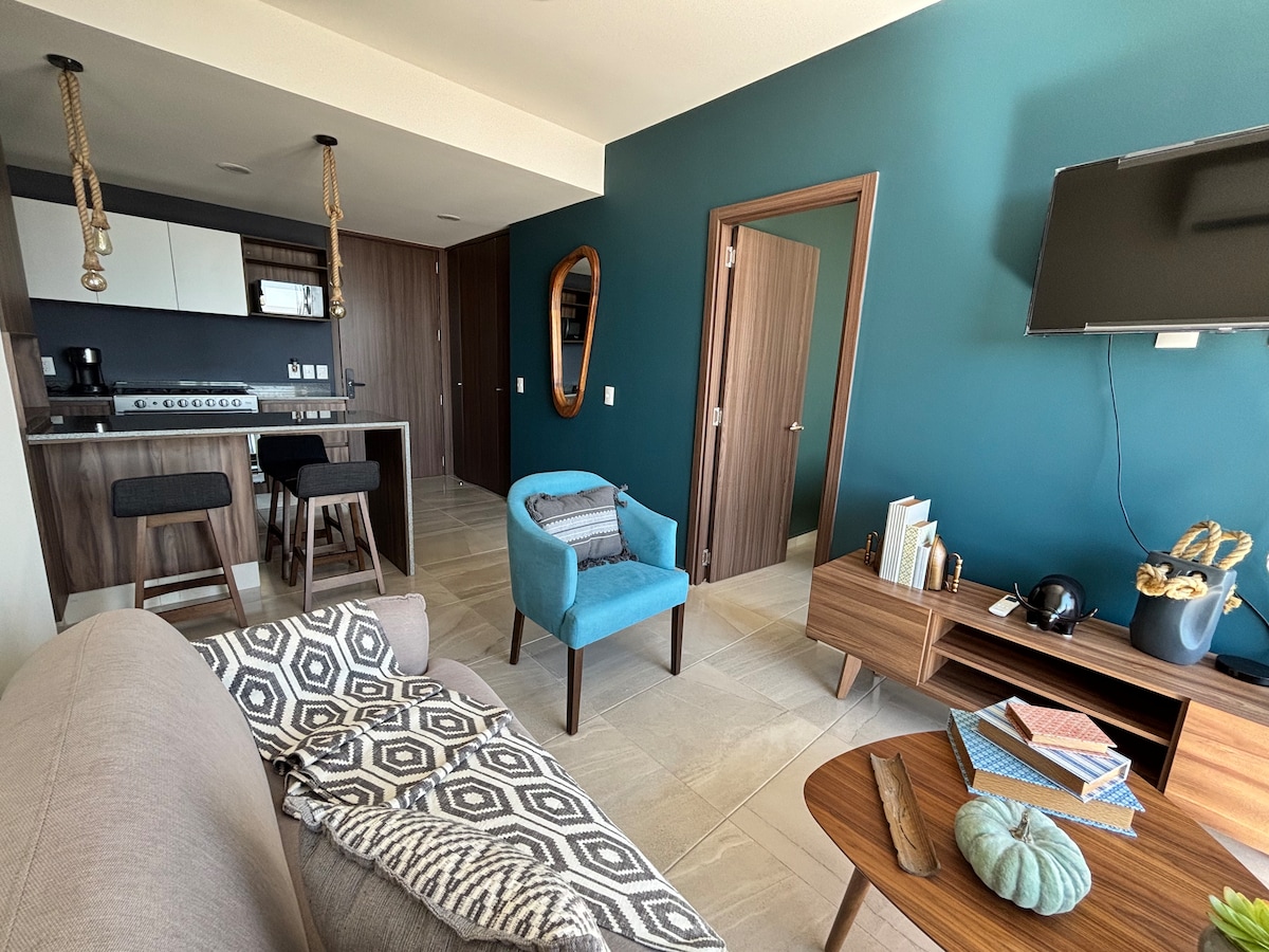 -22nd floor swimming pool -Beautiful gym with city views -Fully equipped for long stays -Parking available (at additional cost) - Housekeeping service: Once a week for reservation of +7 nights This deluxe studio with a balcony has everything you'll need for your stay. Located in a brand-new luxury tower in the Providencia neighborhood, near the Midtown Jalisco shopping mall.