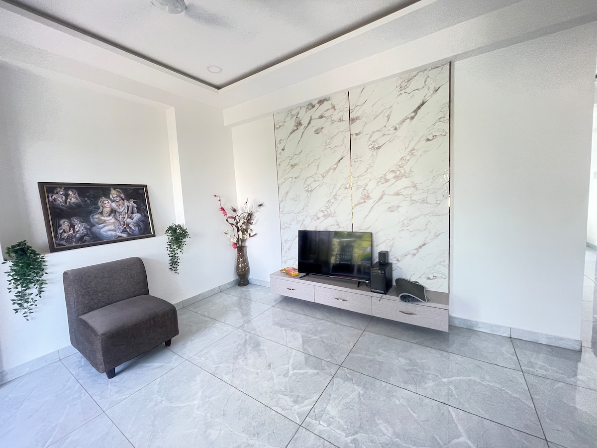 Relax with the Executive and a peaceful place to stay. The centrally located place welcomes you to this 2 bhk Flat. Once inside, the 4k TV and Sofa set in the hall makes it perfect for Movies and relaxation. Seamless WiFi connection is perfect for your work. You have a Simple and useful kitchen and Dining table Leftside Spacious Master bedroom with king-size Bed and second Bedroom has a queen-size bed Both are having attached Bathrooms with air conditioning. Both the Bedrooms have Chilled AC.