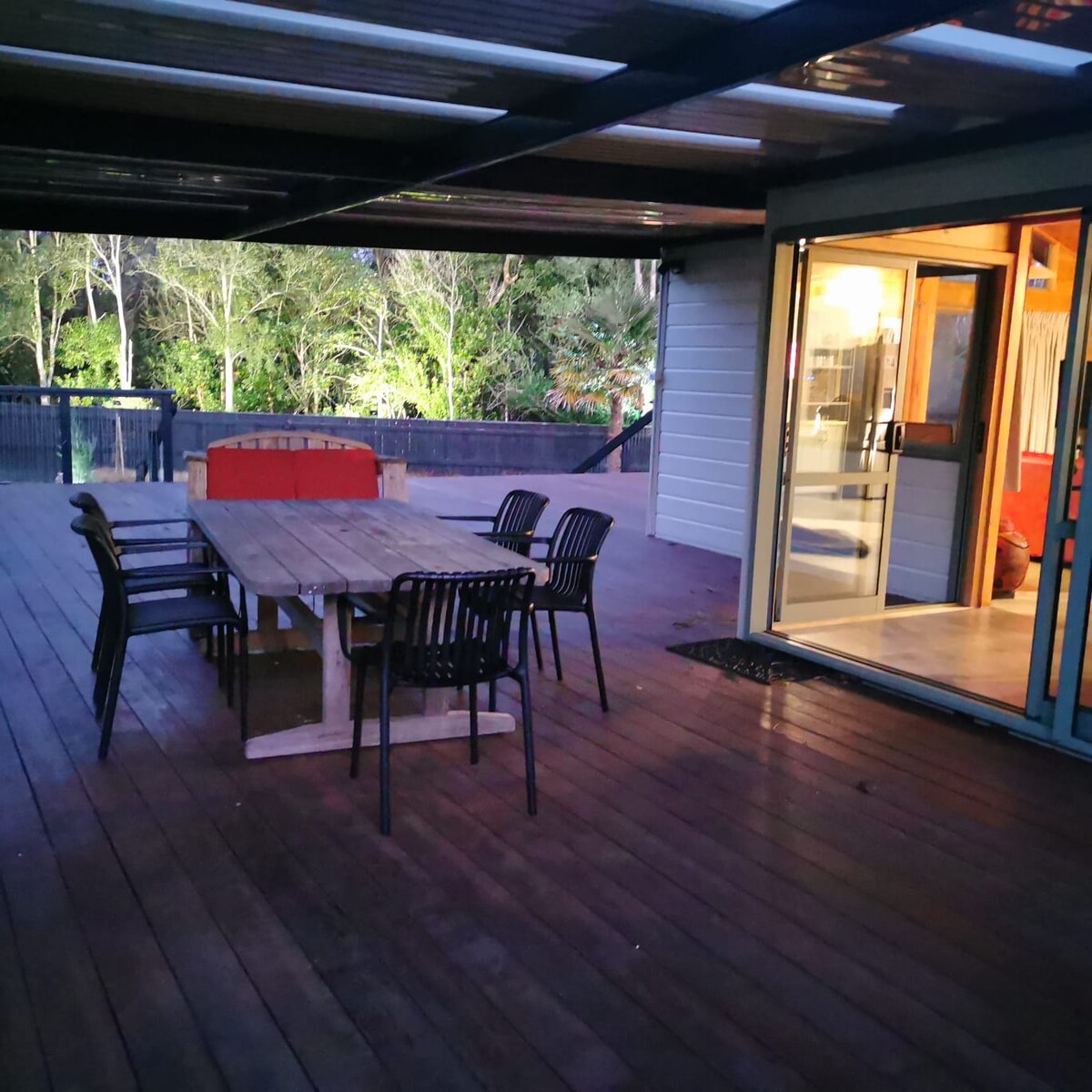 Smaakvol gerenoveerd volledig uitgerust huis en nieuwe slaapplaats. Volledig geïsoleerd met dubbele beglazing. Grote badkamer, gas warm water en grote keuken/eetkamer/familiekamer met uitzicht op een groot dek voor buitenleven. Warm en gezellig in de winter (warmtepomp), schaduw in de zomer met grote vlakke gedeelte van gazon, tuin en bomen. Zeer dicht bij de rivier op loopafstand over de brug naar Turangi winkels. Carport bevestigd aan huis voor droge toegang. Rustige straat grenzend aan de rivier de Tongariro en het park