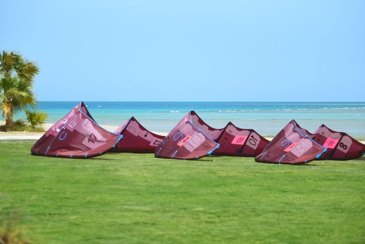 Appartement met twee slaapkamers dat geschikt is voor maximaal zes personen. 🏖️ Directe toegang tot het strand. 🍳 Volledig uitgeruste keuken. 🌴 Volledige toegang tot de resortfaciliteiten, waaronder zwembad, restaurant en windsurfen. Het beroemde El Gouna ligt op 15 minuten rijden met de auto van het resort. Gelegen in het hart van de resortstrook van Hurghada, op slechts 15 minuten van El Gouna, bevind je je op de perfecte locatie om de wereldberoemde duik- en windsurfplekken aan de Rode Zee te verkennen en te genieten van de levendige jachthaven.