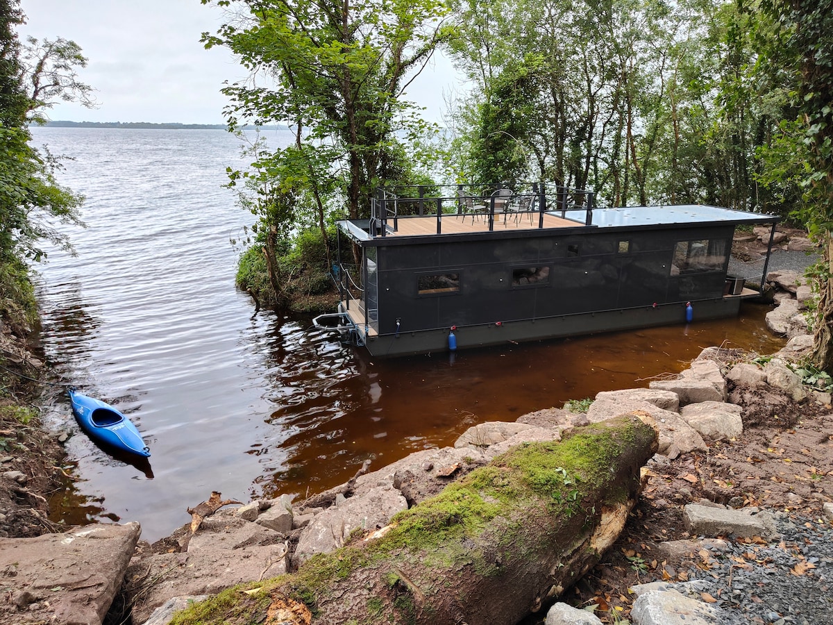 Unieke bootshuis-ontsnapping! Verscholen in het bos, vlakbij Garrykennedy. Gelegen aan Lough Derg, afgelegen en toch handig. Zorgvuldig uitgerust. Ontspan op het dak van het boothuis of verken de natuur. Geniet van een eigen, overdekte hot tub en vuurplaats (€ 120/2 nachten: schoongemaakt, verwarmd met brandhout, geen chemicaliën toegevoegd). Kajaks beschikbaar. Ontkoppel van het stadsleven, dompel je onder in de rust van de natuur. Je buitengewone retraite wacht op je! Larkins Restaurant op slechts 4 minuten rijden.