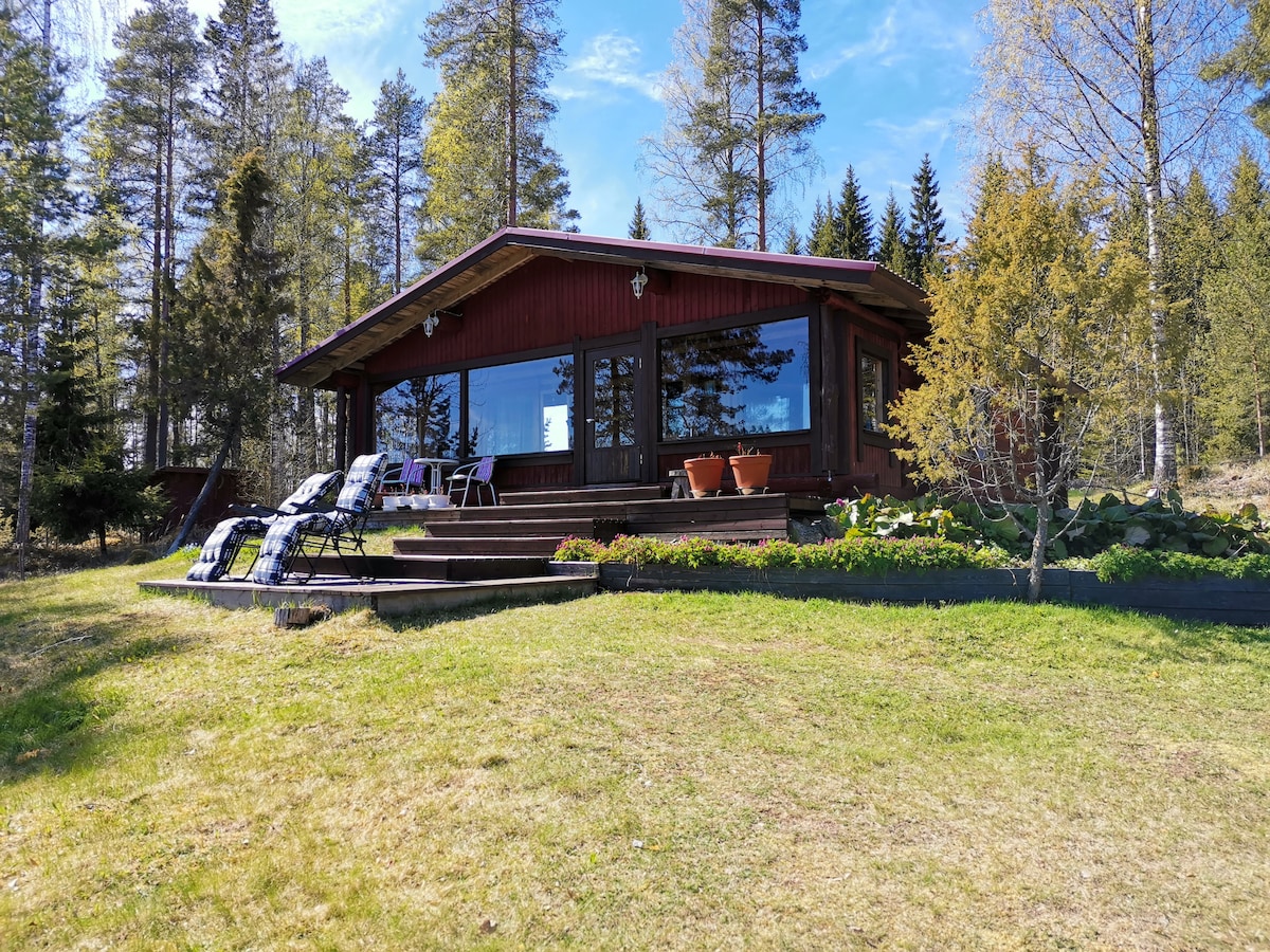 Elektrisch chalet met een goed uitzicht op het meer. Groot terras, zomerkeuken, buitensauna, vuurkorf (volgens afspraak), meerdere kampvuurplaatsen, gasfornuis, gasbarbecue, koelkast en Amerikaanse kast met een klein vriesvak. Ruimte voor een groep van 6 personen. Er is een roeiboot met elektromotor. Water uit het meer. (Drinkwater is beschikbaar in een jerrycan in de hut.) Sauna met elektrische reisdouches. Visrijk meer en jacht op klein wild (afhankelijk van het seizoen) mogelijk. Voor langetermijngasten wordt er gezorgd voor kledingonderhoud.