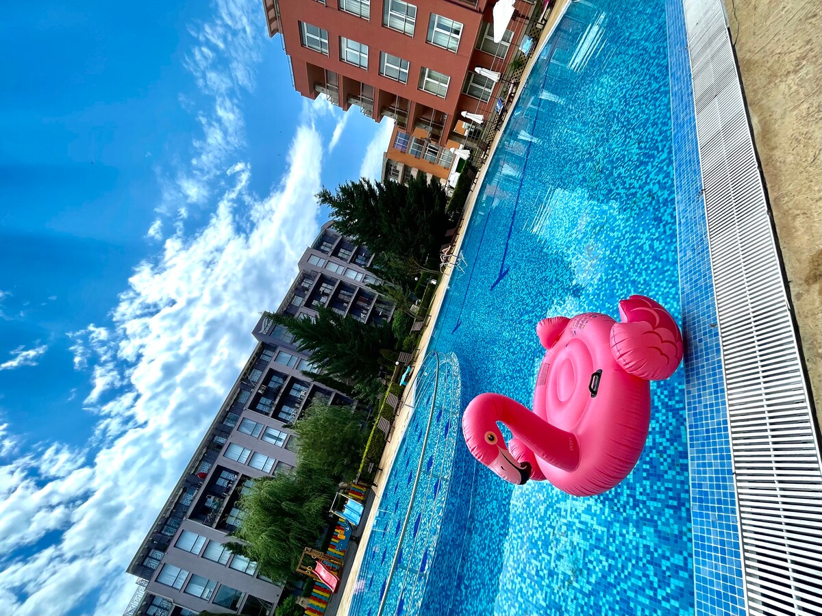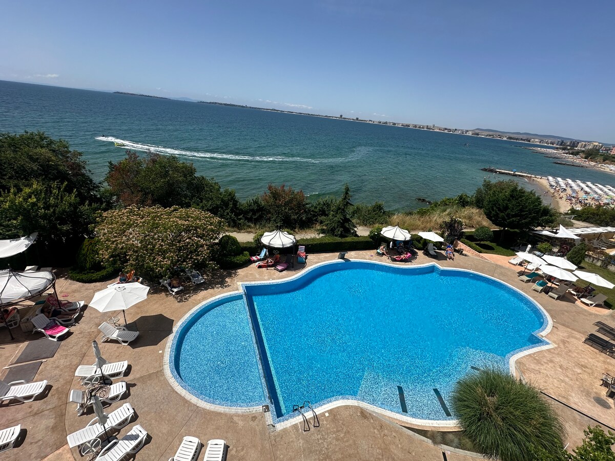 🌴 Ontspan bij het zwembad in ons Sunny Beach Resort-appartement Welkom bij je perfecte Sunny Beach-uitje! Ons moderne appartement op de begane grond biedt directe toegang tot een VIP-zwembad, een combinatie van comfort, gemak en ontspanning in resortstijl - ideaal voor stellen, gezinnen of vrienden. Gelegen in de gewilde Harmony Suites 16 Grand Resort, geniet je van een rustige omgeving terwijl je dicht bij alles blijft wat Sunny Beach te bieden heeft.