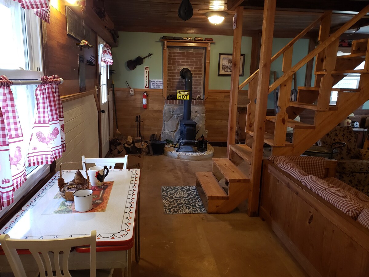 Je zult genieten van dit unieke en romantische uitje in een unieke gerenoveerde graanbak. Geniet van de geluiden van de natuur en het uitzicht op de Mahoning-rivier terwijl je aan tafel zit op de overdekte patio of ontspant in het bubbelbad. Geniet van een vuur in de rookloze Breeo vuurplaats op de onderste patio, ontspan in de hangmat of maak het gezellig binnen voor de elektrische open haard. Kajaks en zwemvesten zijn ter plaatse beschikbaar om over de rivier te reizen voor een schilderachtig en rustig uitzicht.