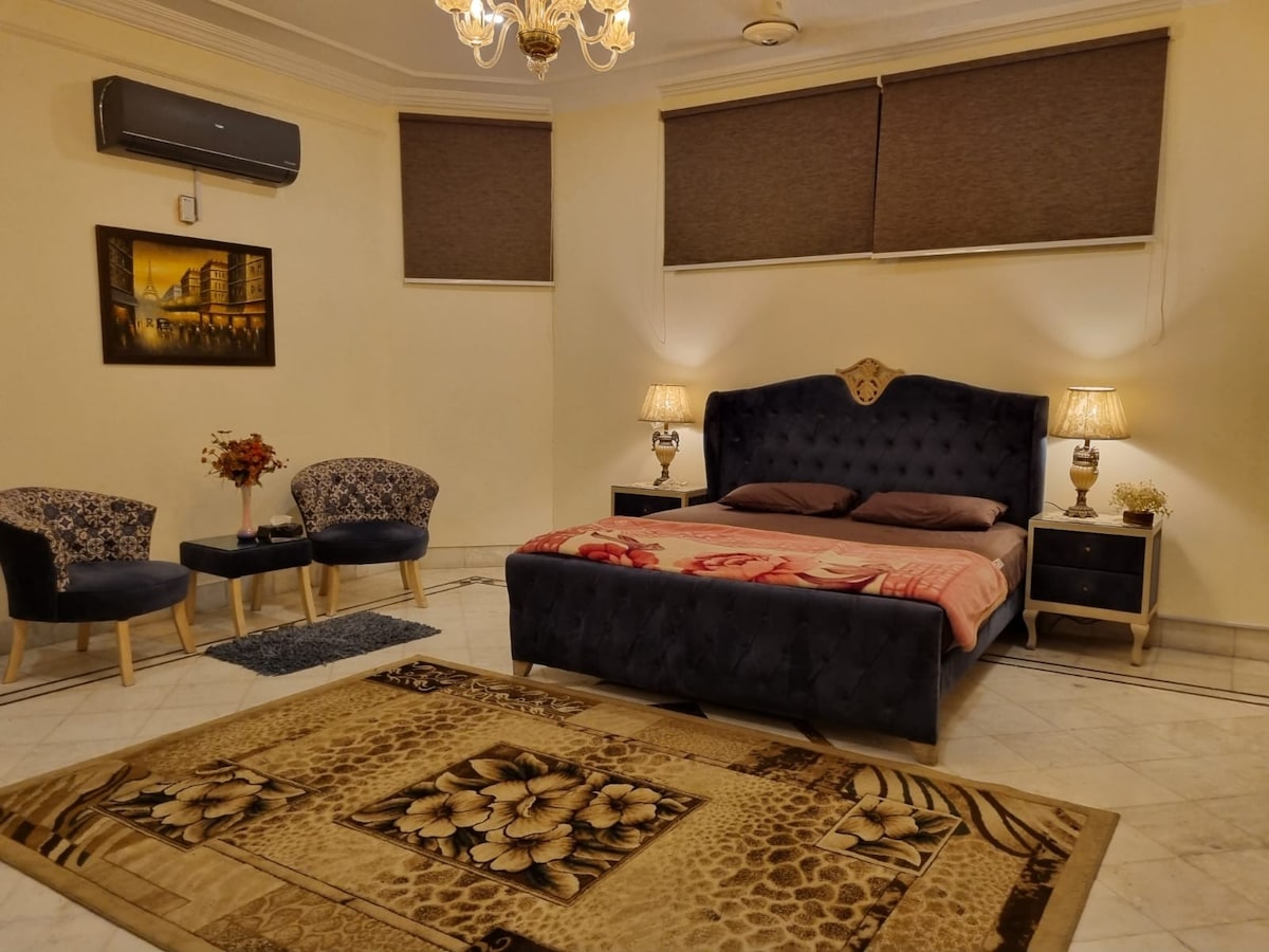 Welkom in onze stijlvolle suites met twee slaapkamers in DHA 5 Islamabad. Geniet van het gemak van snel woon-werkverkeer en ontspan in een ruimte met een mooie inrichting en een volledig uitgeruste thuisbioscoop. Ideaal voor reizigers die op zoek zijn naar comfort en entertainment, biedt dit gezellige toevluchtsoord moderne voorzieningen op een toplocatie. Het is een compleet apart gedeelte met een eigen aparte ingang en parkeerplaats, gezinsvriendelijk, dus zeer veilig en vredig. Feesten & luide muziek is niet toegestaan. Ongehuwde stellen zijn niet toegestaan.