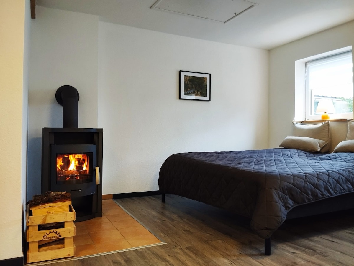Geniet van de rust en veiligheid van deze oude muren. Omgeven door oude bomen in het Mecklenburg Lake District. Je appartement is 1 op de eerste verdieping en is zorgvuldig gerenoveerd. We herbouwden de oude kleifabrieken, ontdekten de oude vloerplanken en alleen de beste kleiverf kwam naar de muren. De HideAway wordt afgerond door een kleine gietijzeren open haard voor de avonden en een eigen sauna aan de rand van het veld ... We houden van kinderen 🧡🌟 4 katten en 1 hond wonen op de boerderij ;-)