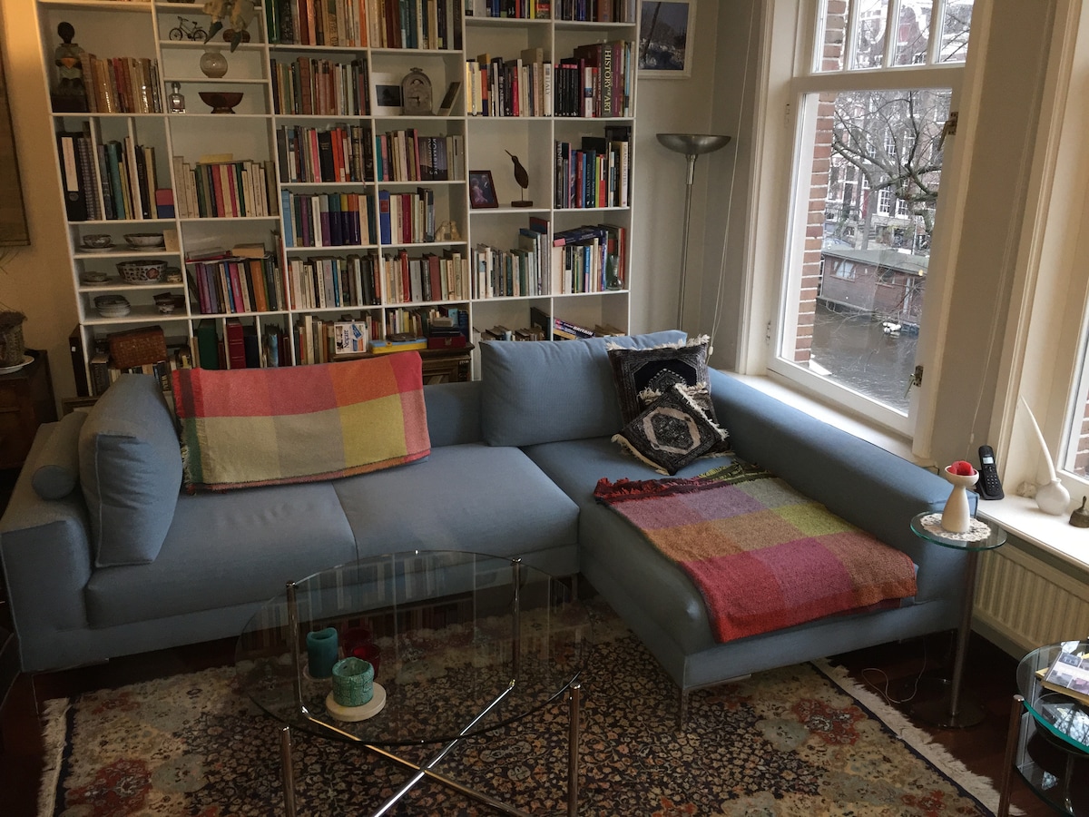 Een smaakvolle plek in een woonhuis in een rustige hoek van het hart van Amsterdam. Alle bezienswaardigheden en voorzieningen bevinden zich op loopafstand. Het huis ligt aan een van de breedste en mooiste grachten van Amsterdam. Chinatown, de Nieuwmarkt en de rosse buurt liggen om de hoek en toch is de straat rustig. Een aantrekkelijke plek voor een kort of langer verblijf in Amsterdam.