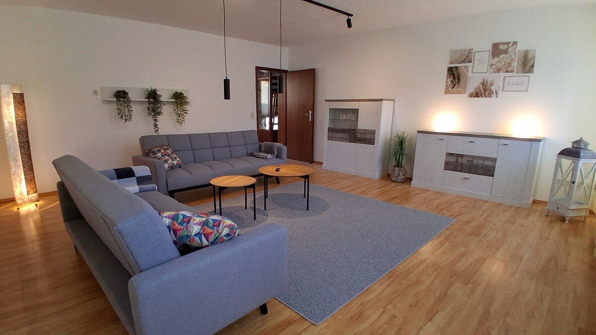Welkom in ons nieuwe vakantieappartement! Deze is gelegen in Oberkotzau - rustig gelegen. Het goed voorziene nieuwe appartement met vloerverwarming is modern en heeft een grote woon- en eetkamer met toegang tot het eigen terras. Er is een boxspringbed en een slaapbank met topper. De keuken is voorzien van alle benodigde kookgerei (incl. Broodrooster, vaatwasser, koelkast en koffiezetapparaat, enz.) .