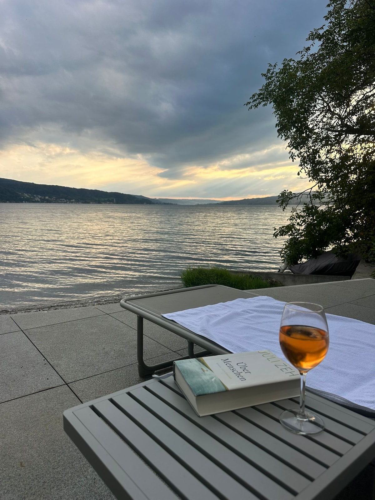 Slechts een paar stappen op blote voeten over de weide van het kleine park voor het huis en je springt in het water, geniet van de drukte van de watervogels of de spectaculaire zonsondergang over de vulkanen van de Hegau. De bloembedden en de oude bomen van het park openen het uitzicht op de Gnadensee en het kloostereiland Reichenau. Je kunt genieten van dit prachtige panorama door de ruime ramen vanuit bijna alle kamers en natuurlijk op de balkons van het 200 m ² duplex appartement.