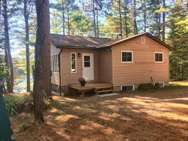 Ontspan in de natuur in dit nieuw gebouwde (2022), 4-seizoenen, off-grid huisje privé gelegen op een 36 hectare groot landgoed aan Bark Lake. Onbeperkt internet. De hut is gebouwd met de natuurenthousiasteling in gedachten. Gelegen op een klif met zonsondergangen in het westen, overvloed aan natuur en een buitenwoonkamer. De accommodatie heeft ook toegang tot de waterkant met een groot dok om te zwemmen en te ontspannen. Neem je waterspeelgoed / boot mee, want je hebt toegang tot de privébootlancering. 1 hond toegestaan. ON Park pas $ 25