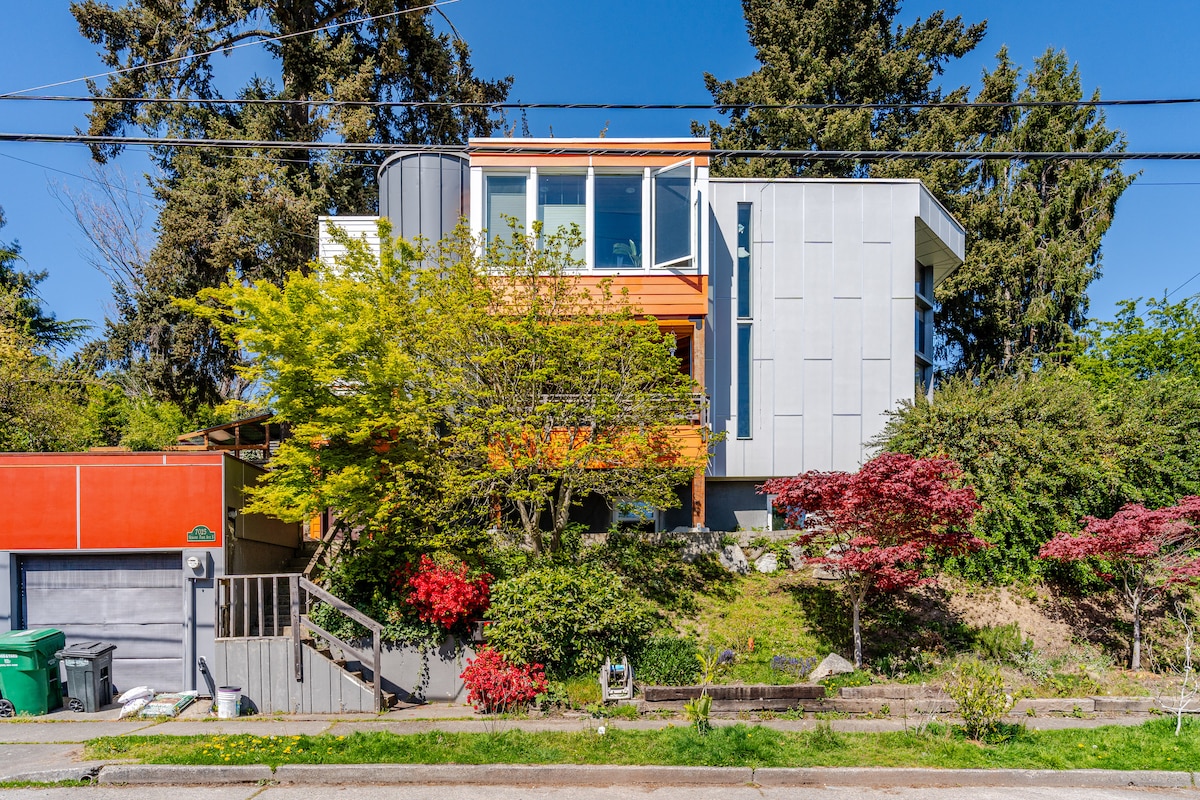 Oorspronkelijk gebouwd in 1956 en volledig gerenoveerd in 2015, onze studio levert "retraite vibes". De hele oostelijke muur is kamerhoge ramen met uitzicht die door bomen gluren en een glimp van Lake Washington laten zien. U kunt genieten van zonsopgangen vanuit bed of totale verduistering ervaren met verticale jaloezieën van vloer tot plafond. Gezellig queensize bed met een organisch matras met een Avocado topper en beddengoed. Volledige keuken met gloednieuwe apparatuur, grote inloopdouche met een luxe stoomboot. W/D inbegrepen.