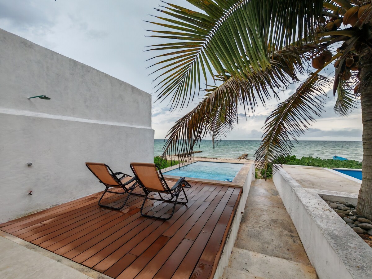 Huis met zwembad op 30 meter van het strand in Progreso.