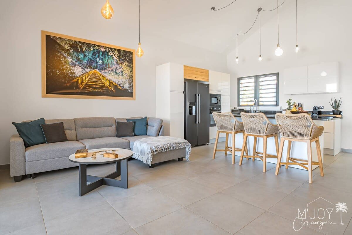 Stel je voor dat je elke ochtend wakker wordt met uitzicht op de uitgestrektheid van de Indische Oceaan, of elke avond verwondert over fantastische zonsondergangen. Welkom bij Ti Kaz Nono, een mooie villa gelegen in het hart van het prestigieuze Domaine du Grand Bleu, met uitzicht op het mooiste strand van het eiland, in Grande Anse. Met zijn ongelooflijke uitzicht op de oceaan en de nabijheid van het strand, is het de perfecte vakantiewoning voor wie op zoek is naar een rustige vakantie dicht bij de natuur.