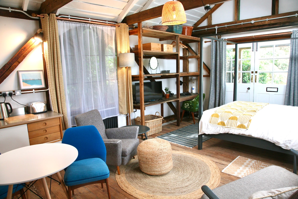 Ontspan en kom tot rust in deze vredige, stijlvolle ruimte. Genesteld op het terrein van ons 15e-eeuwse huis. De Lodge ligt perfect bij de Old Guildhall, gebouwd in 1429 met zijn rijkdom aan geschiedenis, omgeven door een prachtig landschap. De iconische badplaats Southwold ligt op minder dan 10 minuten rijden. Het lokale dorp met café, winkel, Chinese afhaalmaaltijden en openbare huizen is op loopafstand, net als het strand. Ontspan op het balkon met een drankje en geniet van de schoonheid van de omgeving