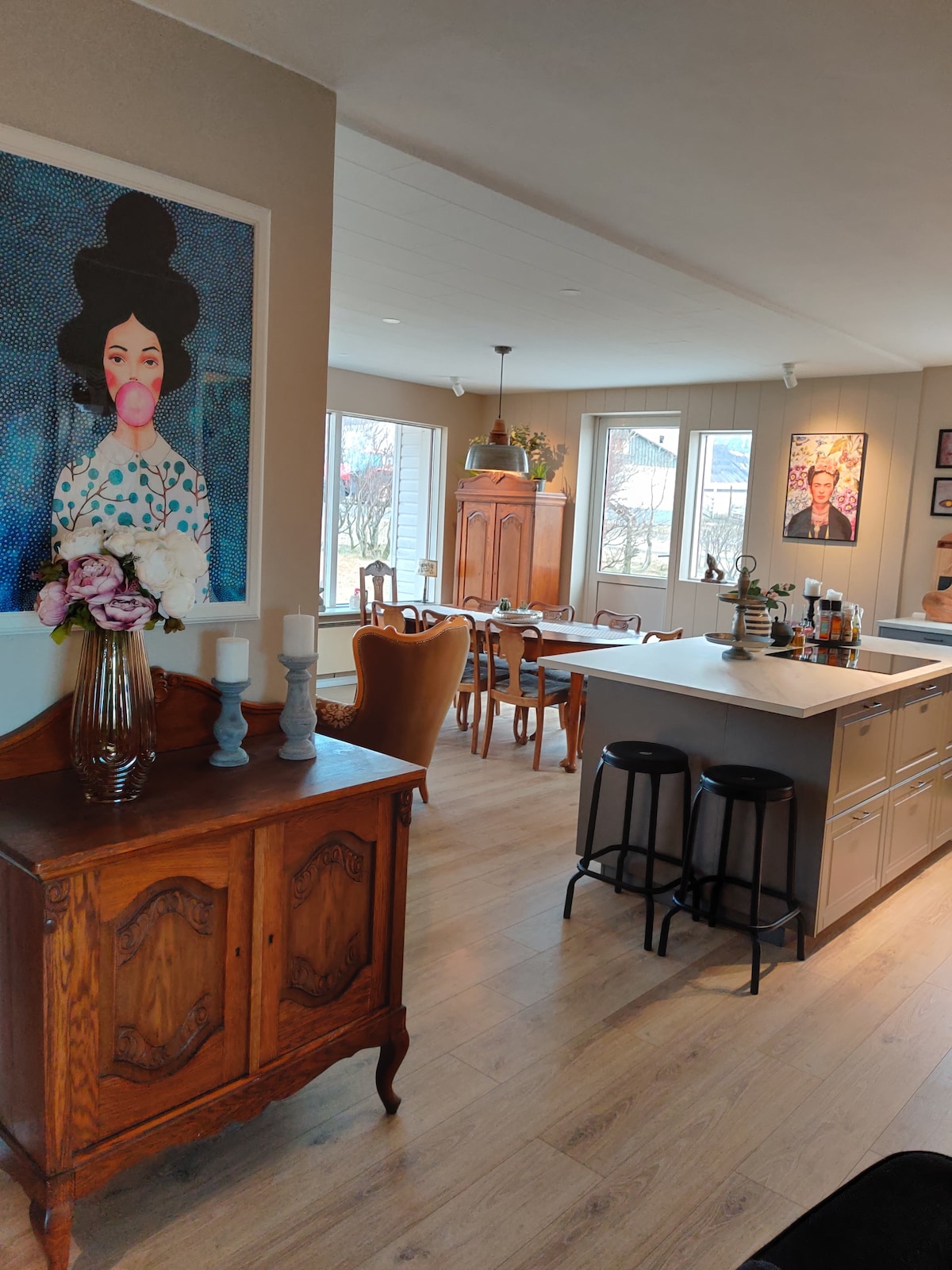 Glaðheimar is gelegen in Króksfjarðarnes, een perfecte locatie voordat je Westfjorden verkent. Vroeger was Glaðheimar een oud postkantoor en aan de overkant van de rode was de hoofdwinkel voor boeren en mensen in de omgeving die nu een handwerk heeft gemarkeerd. Het uitzicht over Breiðafjörður uit het huis is geweldig en de zon gaat pas om 23.00 uur onder en kijken naar de zonsondergang is gewoon adembenemend
