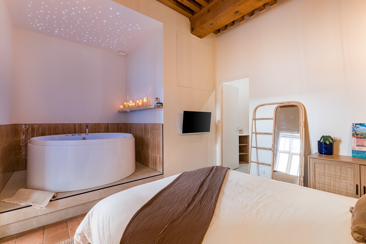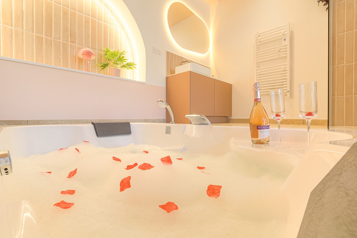 🌹Trakteer jezelf op een pauze van luxe en welzijn in deze unieke stijl suite, genesteld aan de iconische Saône-kades. Dompel jezelf onder in een romantische en rustgevende sfeer, waar elk detail je verblijf verbetert. Geniet van een eigen jacuzzi voor een moment van absolute ontspanning, gesust door de zachtheid van het water en de charme van de oevers van de Saône Of het nu gaat om een romantisch uitje, een onvergetelijke avond of een moment van genezing, deze suite belooft een buitengewone ervaring 🍀