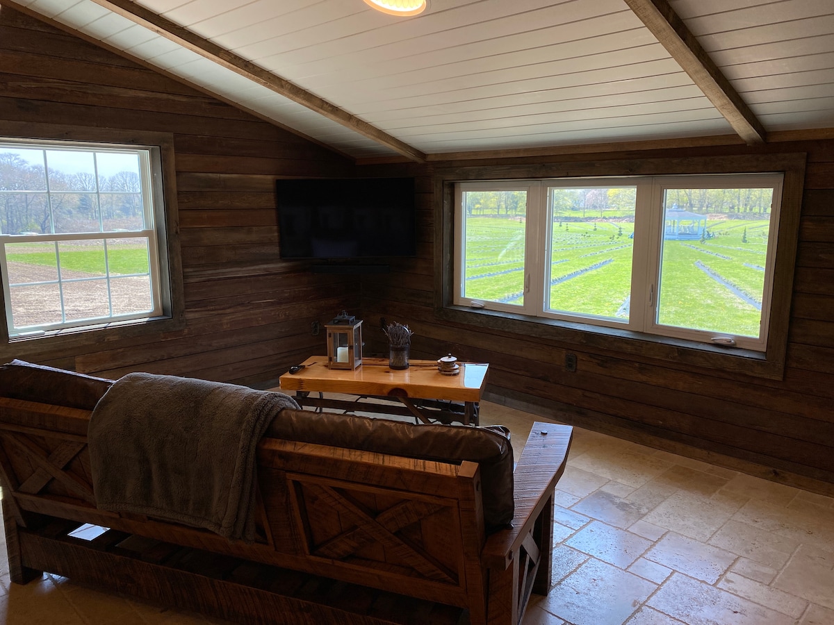 De luxe suite is voorzien van teruggewonnen hout uit een 150 jaar oude silo. Teruggewonnen balken sieren het plafond. De douche beschikt over regen, waterval en massagestralen. Er is een vier post kingsize teruggewonnen houten bed met een prachtig uitzicht op de tweede verdieping van het hele ronde lavendelveld. Er is ook een open keuken/woonkamer met uitzicht op meerdan 4.000 lavendelplanten. Je wordt omringd door op maat geplukte, geïmporteerde Italiaanse granietselecties. De wastafels in de suite zijn voorzien van amethist geodes.