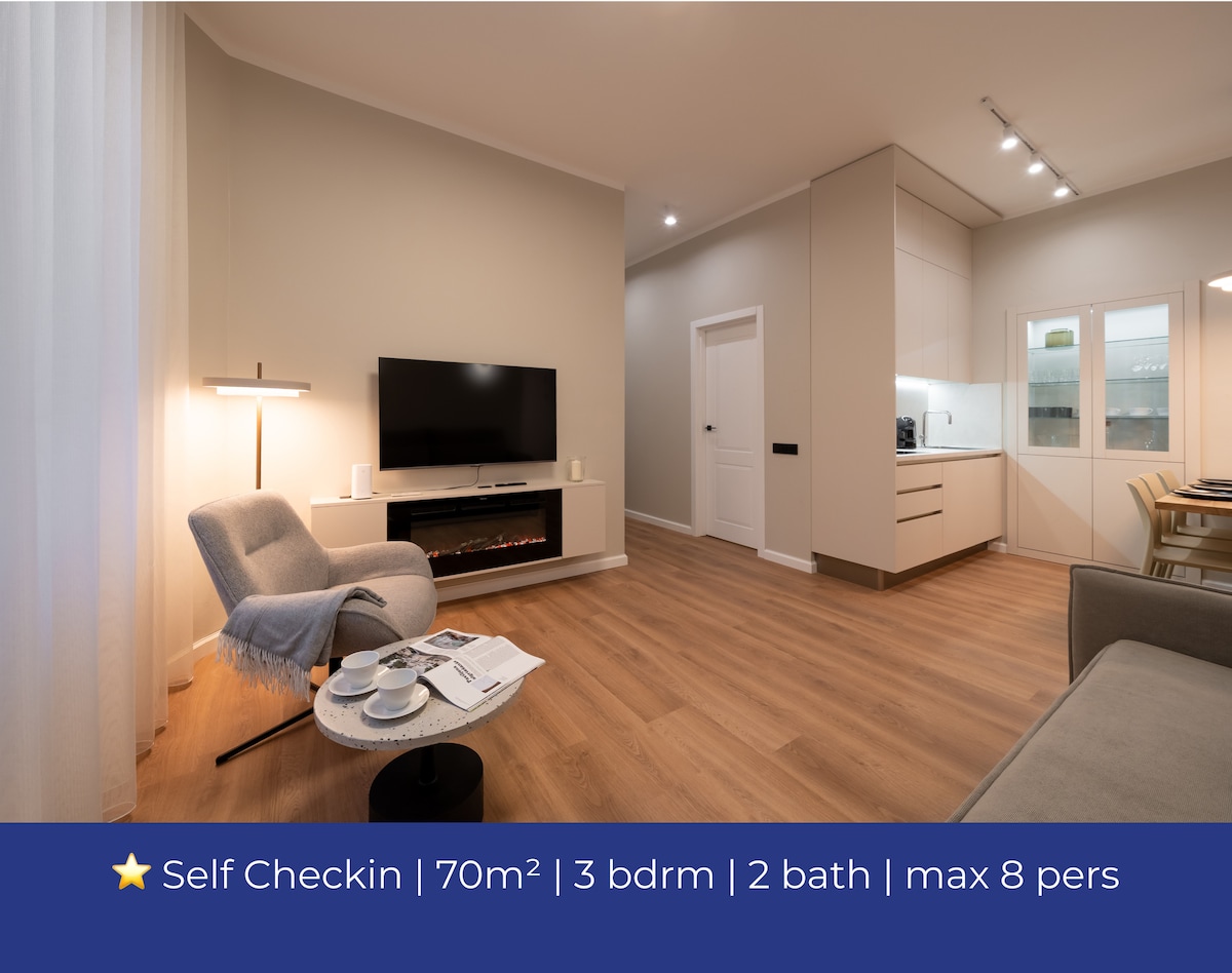 Stijlvol, onlangs gerenoveerd appartement met een eigen ingang, ontspannende sauna en grote ingebouwde kasten - perfect voor een kort of lang verblijf. Gelegen in een levendige omgeving dicht bij het beste nachtleven, bars, cafés en culturele plekken van Riga. Uitstekende toegang tot alle openbaar vervoeropties, waardoor het gemakkelijk is om de stad te verkennen. Ideaal voor koppels, solo-reizigers, vriendengroepen of iedereen die op zoek is naar comfort en gemak in het hart van Riga. Met snelle WIFI en EV-oplader aan de overkant van de straat.