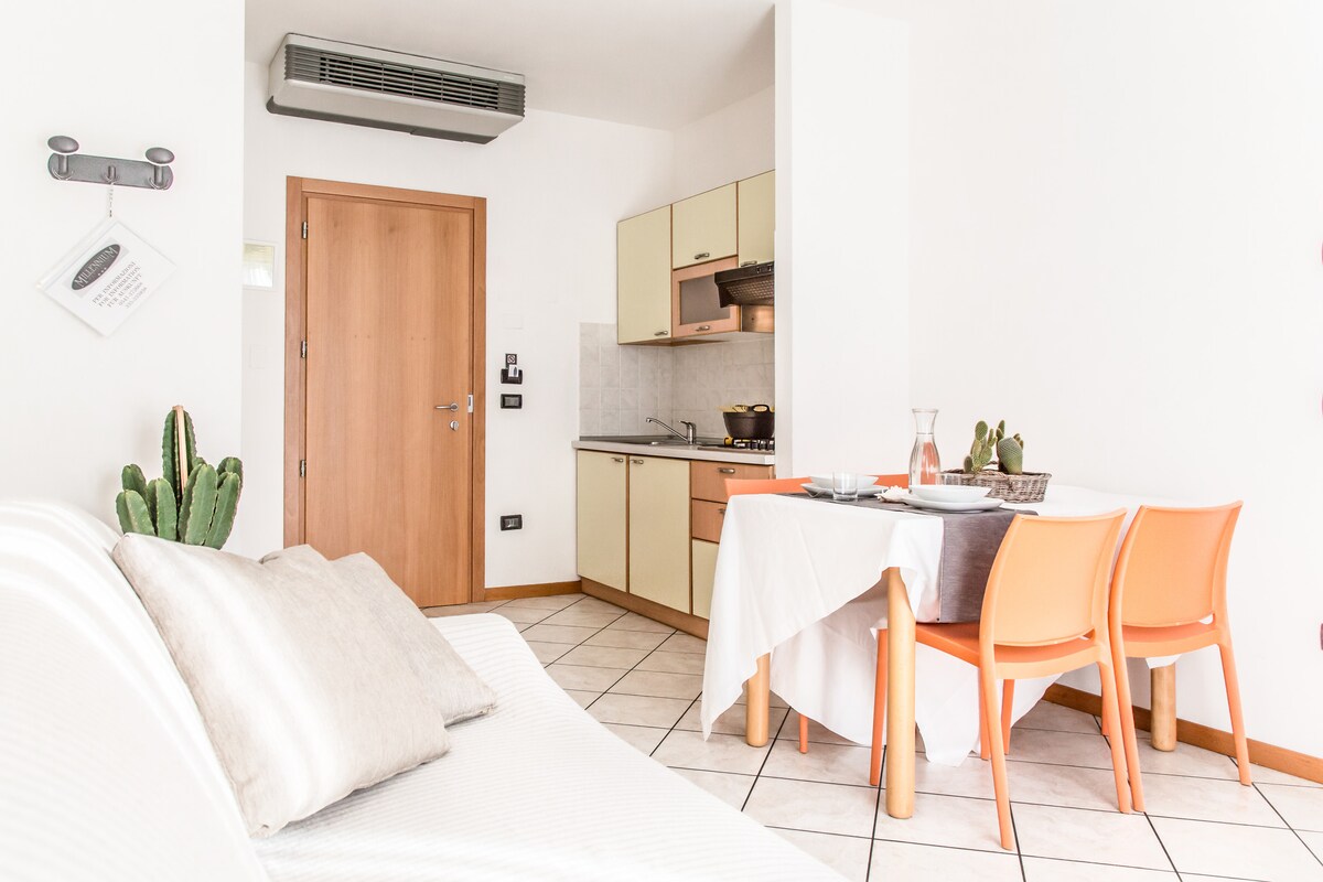 Comfortabel appartement in residentie, op een steenworp afstand van het strand van Rimini en op 20 meter van de bushalte aan de Metropolitaanse kust tussen Rimini en Riccione. Het appartement bestaat uit een woonkamer met slaapbank en een slaapkamer met stapelbed, uitgeruste keuken, badkamer met douche en balkon. De accommodatie heeft gratis WiFi, beddengoed, handdoeken, keukengerei, enz.