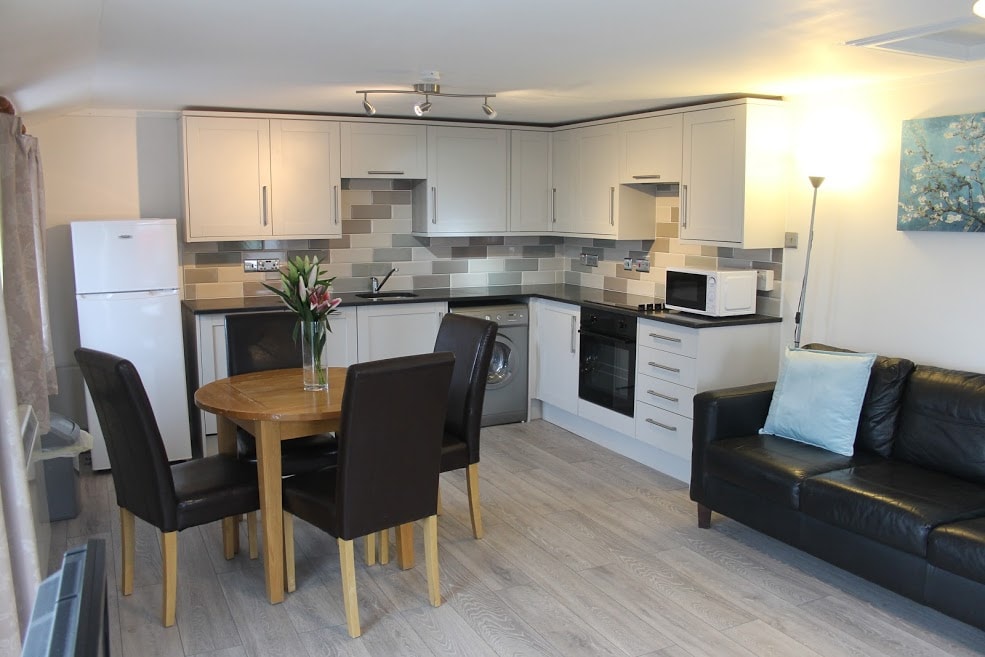 Wrens nest is een gezellig eenkamer huisje met een open ontwerp dat charme met functionaliteit combineert. De grote kamer heeft een eenvoudige indeling waar het bed, de bank en de keuken dezelfde ruimte delen. Het comfortabele eikenhouten bed heeft neutraal beddengoed en nachtkastjes met leeslampen. De tweezitsbank heeft kleine opvouwbare tafels om te dineren. De keuken beslaat één muur met eenvoudige kasten, tweepits kookplaat, koelkast, magnetron en kleine airfryer. De doucheruimte is voorzien van wc en wastafel met opbergruimte.