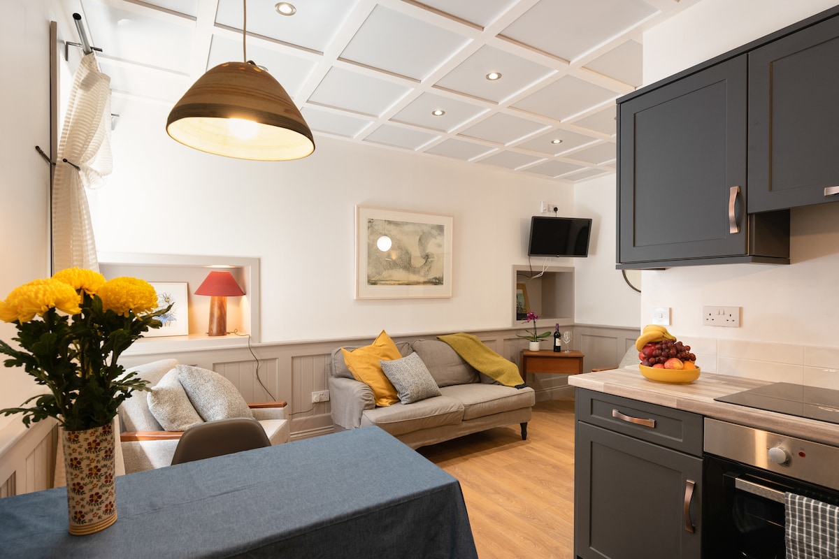 Bekroond als een van de top 10% van Airbnb-woningen 🏆 Privé-ingang, een volledig appartement, niets gedeeld, snelle wifi (95-100 mbps), Google home, Sky 50 inch HDTV en Netflix. Je wordt verwelkomd met een continentaal ontbijt met gepersonaliseerde melkkeuze en alle basisvoorzieningen die je nodig hebt voor een geweldig verblijf. Gezien de geweldige locatie is dit appartement zeer vredig binnen. Het kijkt uit op de tuinzijde en omdat er slechts 10 appartementen in het blok zijn, ben je verzekerd van een heerlijke nachtrust. Maar geen lift, sorry