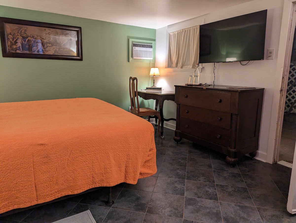 Clementine 's Room is een heerlijke schuilplaats in Mid City op Bayou St. John. Het is gewoon een slaapkamer/bad met tegel douche, wasmachine/droger, en kingsize bed. De deur is naast een prieel voor buitentijd en het bureau kan worden geregeld voor 2 personen om binnen te dineren. Er is een grote Roku-tv voor streaming shows, een minikoelkast, magnetron, waterkoker en koffietrechter voor het maken van 's ochtends koffie of thee, en servies en bestek voor het opwarmen van een snack. Ook kan het worden gecombineerd met onze Sweet Suite voor 2 bedden/2 badkamers familieboeking