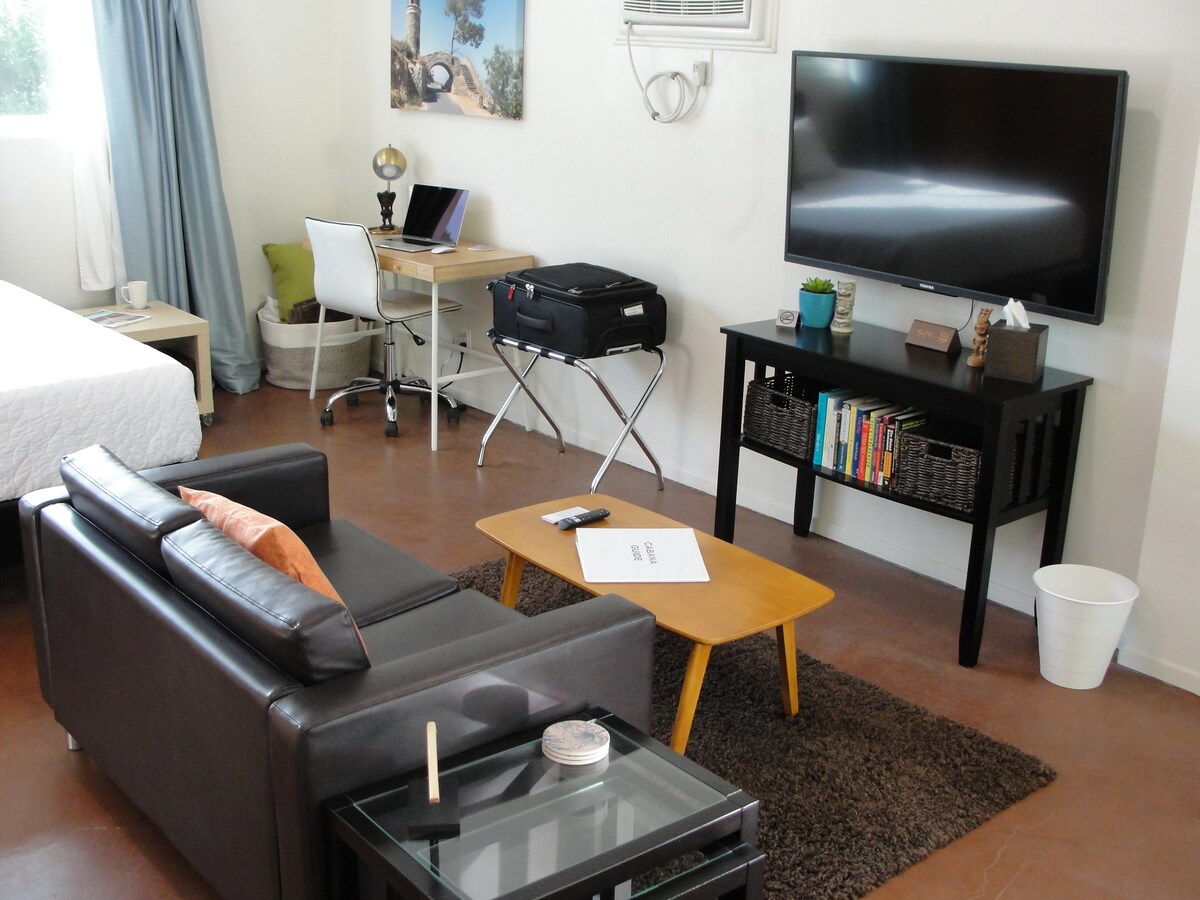 Welkom in onze kleine casita! Met een eigen zij-ingang heeft de ruimte een open woon- en slaapgedeelte met een queensize bed. De keuken heeft granieten aanrechtbladen, een magnetron en een fornuis met twee pitten. Het is niet groot, maar het is schoon en de locatie is geweldig - op loopafstand van het Claremont Village en de 5 Claremont Colleges. Mensen van alle achtergronden zijn welkom in onze casita. Vergunningsnummer voor kortetermijnverhuur van de gemeente Claremont: STR-005