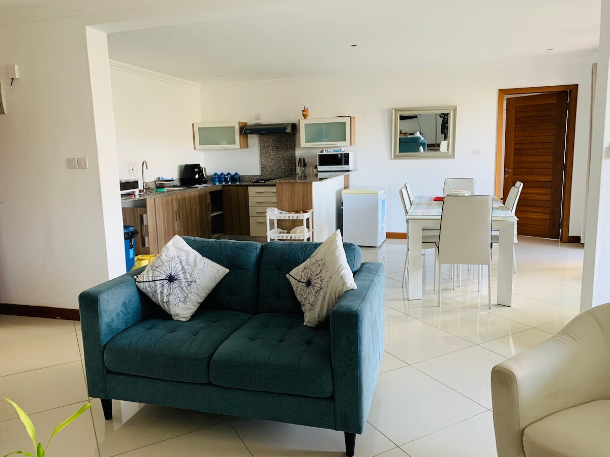 Een prachtig modern appartement op de eerste verdieping heeft 3 slaapkamers op suite , lounge en keuken met een buiten eethoek en chill bar en gastentoilet. TV & wifi beschikbaar. Dagelijkse schoonmaakdiensten met uitzondering van zondag en feestdagen. Er is een gemeenschappelijk zwembad in de prachtige tuin met uitzicht op het strand. Het uitzicht is geweldig vanuit ons appartement met uitzicht op de Black River en Tamarin met de meest prachtige zonsondergangen.