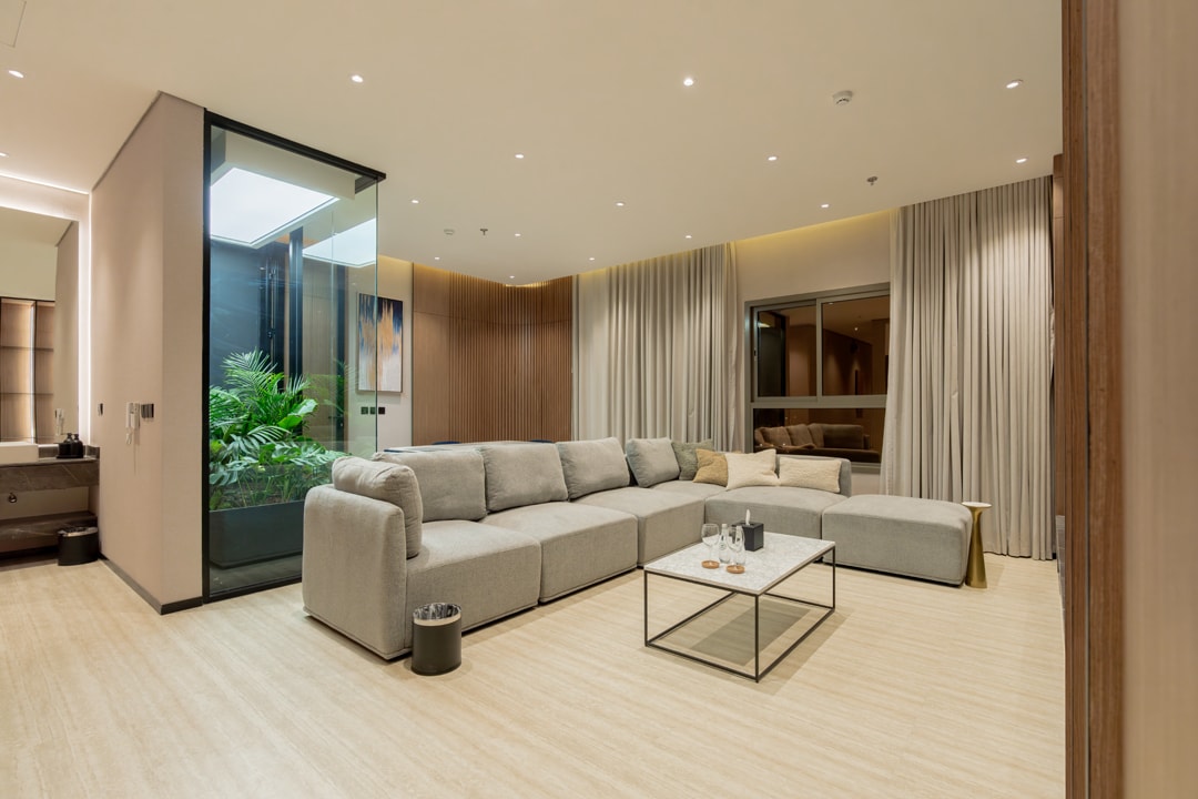 Het appartement heeft een loftsysteem van twee verdiepingen met een elegant en modern design dat de moderne stijl van New York weerspiegelt. Het appartement biedt een uniek en onderscheidend uitzicht op de beroemde Kingdom Tower. Daarnaast is er een buitenruimte waar je kunt genieten van het mooie weer en ontspannen na een lange dag. Het appartement is gelegen in een rustige buurt en tegelijkertijd een van de meest exclusieve buurten van Riyad. Deze strategische locatie in het hart van Riyad maakt het de perfecte keuze voor diegenen die op zoek zijn naar comfort en luxe, evenals gemakkelijke toegang tot verschillende diensten en faciliteiten.