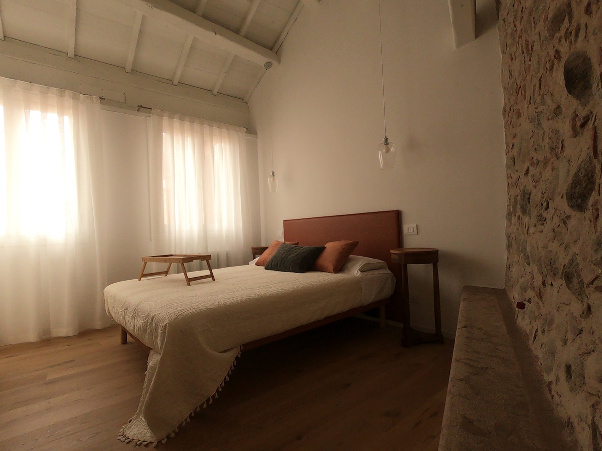 Romantisch appartement in het historische centrum van Bassano del Grappa, op een steenworp afstand van de Alpenbrug, met een eigen ingang, bestaande uit een keuken, een slaapkamer met tweepersoonsbed, een woonkamer met een slaapbank en een badkamer met een douche. Er is parkeergelegenheid aanwezig, zelfs overdekt, vlakbij de woning.