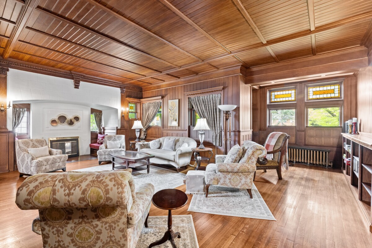 Dit prachtige en statige 19e-eeuwse herenhuis, in het hart van de wijk East Avenue Preservation van Rochester, beschikt over zeven sprankelende kroonluchters! Met meer dan 6000 vierkante voet hebben jij en je gasten voldoende ruimte om speciale evenementen of familiebijeenkomsten te vieren in dit grote huis! Prachtig gerestaureerd tot historische architectuur, elke kamer is prachtig ingericht en ruim. Een enorme moderne keuken met een Italiaans gasfornuis en een gashaard maakt het entertainmentgevoel van dit huis compleet!