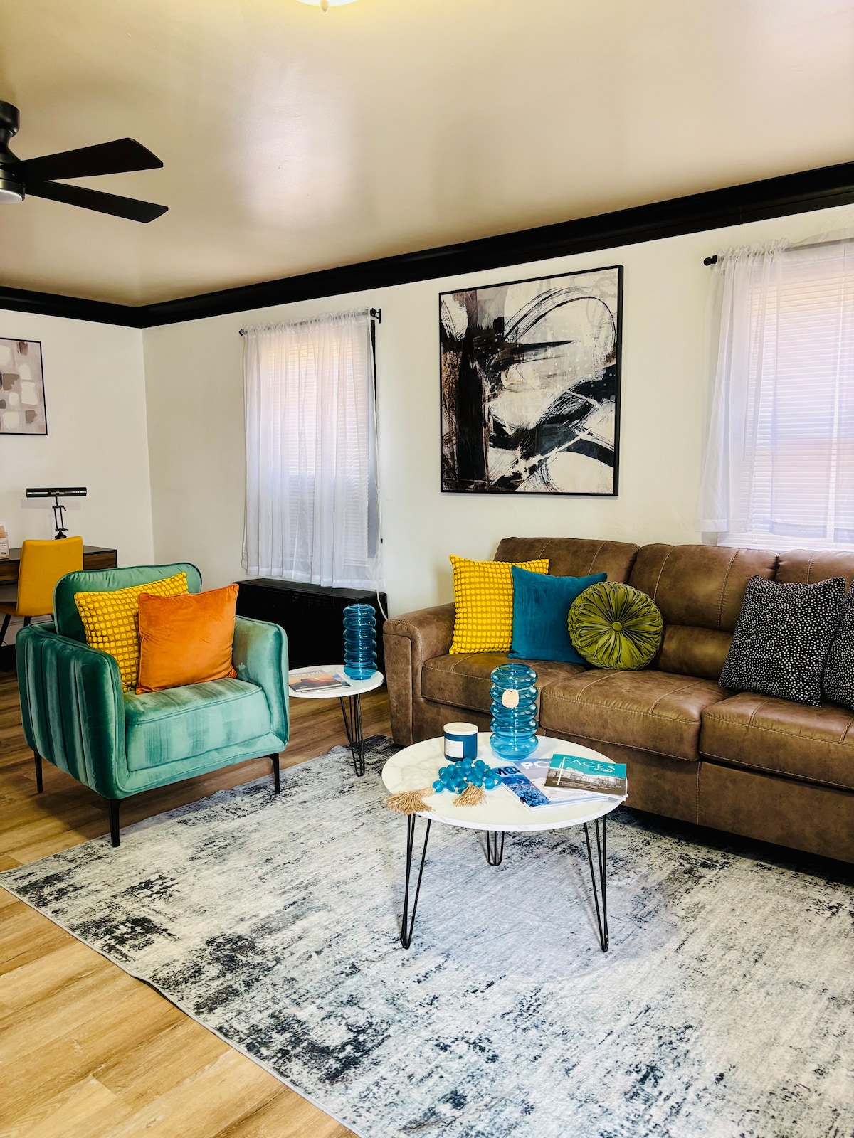 Charmante 1950 onlangs gerenoveerde woning, in een schilderachtige buurt. In minder dan 1 mijl van de uitgang en het oorspronkelijke centrum van Rock Springs. Ook binnen 1/2 mijl van het City Recreation Center. Parkeren op en naast de straat. 1 slaapkamer met queensize bed en 1 queensize slaapbank. Complete badkamer met wasmachine en droger. Complete keuken met koffie en theebar. Laag origineel houten plafond. Originele zichtbare bakstenen schoorsteen. Schoon en comfortabel zijn is onze prioriteit. Ik kan niet wachten tot je komt logeren!