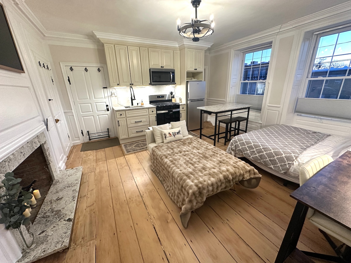 Cozy up during your next trip to southern NH! Built in 1910, the home has been completely renovated. The Studio is a combination of elegance and comfort from the walls of windows that flood the space with light and scenic conservation/golf course views to the spacious backyard that is perfect for a peaceful escape. It is 5 minutes from i-93 and a short drive to Canobie Lake Park, Manchester Airport, and about an hour to Boston, the NH Seacoast, NH Lakes Region and the White mountains.