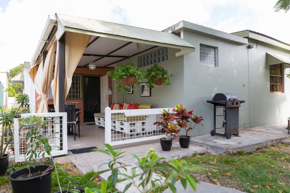 Een gezellig studio-appartement gelegen achter een privéwoning in een rustige buurt op slechts enkele minuten afstand van de prachtige blauwe Caribische Zee, het bruisende nachtleven, weelderige restaurants en vele andere voorzieningen. Er is een volledig uitgeruste keuken, een wasmachine en een barbecue bij de accommodatie. De ruimte is voorzien van airconditioning en heeft een kingsize bed en een futon die neerklapt tot een eenpersoonsbed. Er is een kluis in het appartement.