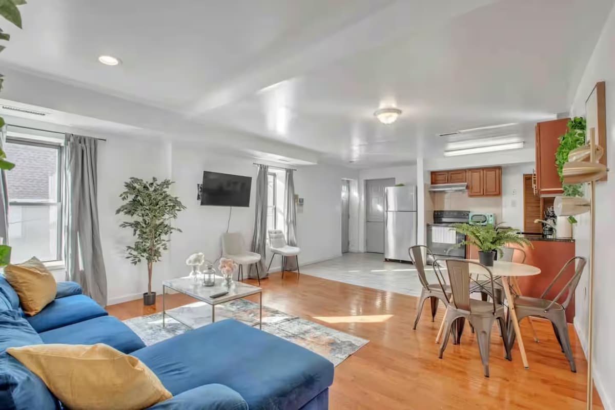 Mooie kunstmuseum studio - Dit ruime appartement met open indeling heeft hoge plafonds met hardhouten vloeren, een groot uitklapbed, een futon; een 60 inch tv met draaimolen, wifi, een eigen bad, een wasmachine/droger, een oven en een magnetron. Slechts een paar blokken verwijderd van vele geweldige attracties, waaronder musea, restaurants, parken en nog veel meer! Contactloos inchecken en de privacy van je eigen unieke ruimte in dit gebouw met twee eenheden. Op loopafstand van de Met, Broad Street Subway en lokale eetgelegenheden.