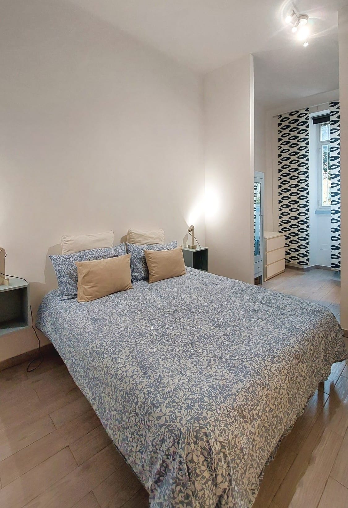 Completely renovated two-room apartment for 3 people. It has a large bedroom and a living area with an american kitchen, table for 4 and sofa bed. Bathroom with shower and chromotherapy lights. This is a Green solution: 100% renewable energy, fully LED lighting, green cleaning products, eco-friendly Airlite wall paint, eco-friendly soaps and ethical finance. Connected and close to monuments and services. Comfort and professional cleaning for a wonderful holiday!