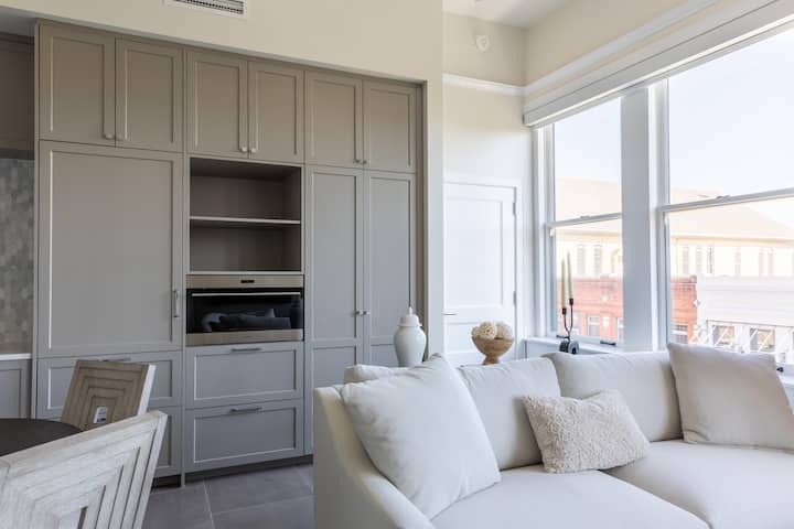 Gelegen op de derde verdieping van het historische Brent-gebouw in het centrum, heeft deze nieuwe PRACHTIGE accommodatie met twee slaapkamers een perfect uitzicht op de hoofdstraat van Palafox en is het gunstig gelegen op loopafstand van winkels, restaurants, parken en entertainment. Het eenvoudige, chique en ontspannen decor nodigt je uit om je comfortabel en thuis te voelen. Elke slaapkamer heeft een kingsize bed en een eigen badkamer. Verduisterende gordijnen zorgen voor een perfecte nachtrust. Een volledig gevulde keuken met Sub Zero- en Wolf-apparatuur is aanwezig voor je eigen gemak. Geniet van je kopje koffie of thee in de prachtige gemeenschappelijke buitenruimte net om de hoek van je voordeur.