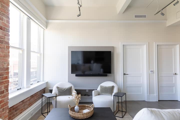 **BELANGRIJKE OPMERKING: Vanaf 5 januari 2026 vindt er bouw plaats op Palafox Street voor The Lofts. Hoewel we enthousiast zijn over de verbeteringen, willen we je laten weten dat dit appartement uitzicht heeft op de bouwwerkzaamheden. Hoewel de bouw geen milieueffecten op het appartement lijkt te hebben, heeft Palafox Street een bruisend nachtleven, waaronder bars en restaurants die later in de nacht open zijn. Je zult hoogstwaarschijnlijk een verhoogd geluidsniveau ervaren, vooral op donderdag- en zaterdagavond. We beantwoorden graag je vragen of geven graag aanvullende informatie op verzoek. De toegang tot The Lofts zou niet moeten worden beïnvloed, omdat er twee alternatieve ingangen aan de zijkant en achterkant van het gebouw zijn, weg van Palafox. We stellen je begrip op prijs en doen er alles aan om het ongemak tot een minimum te beperken en alle gasten op de hoogte te houden. Bedankt!**