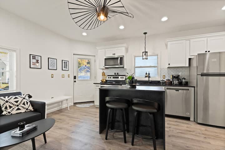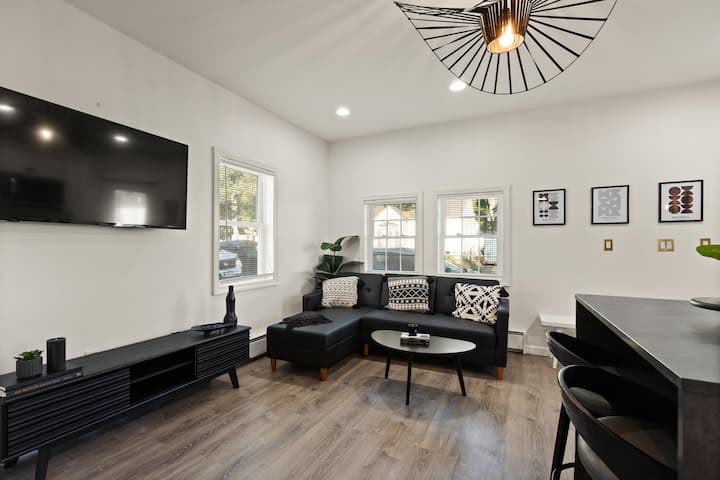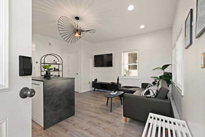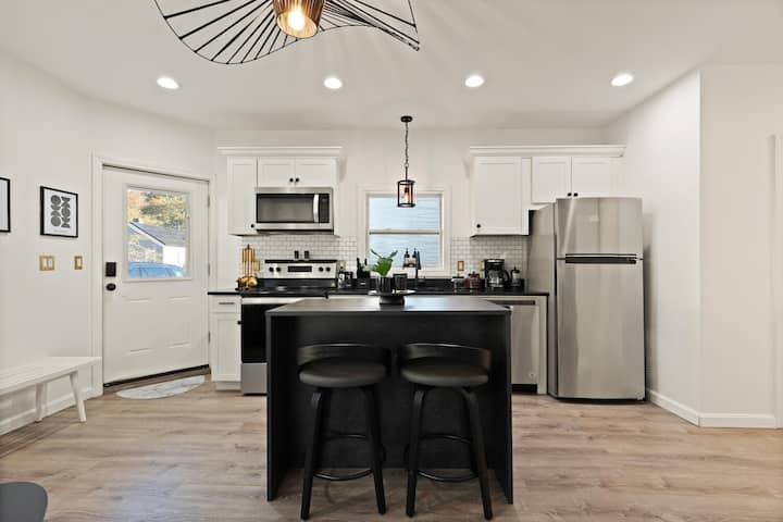 Welkom in onze nieuw gebouwde en gerenoveerde, stijlvolle maar gezellige eengezinswoning, genesteld in het hart van North Shore! Onze zorgvuldig ontworpen ruimte biedt een perfecte mix van comfort en gemak voor korte/middellange verblijven. Deze woning biedt een complete keuken, 2 slaapkamers (Queen, full & twin), verduisterende gordijnen, wasmachine/-droger, 55inch smart-tv, Gigabit FIOS Wifi, sleutelloze ingang, AC/verwarming, eigen terras/tuin met een vuurplaats, beddengoed, wasmiddelen, toiletartikelen en alles daartussenin!